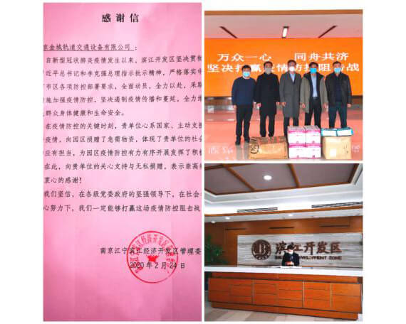 ![]() 集團多次向江寧濱江開發(fā)區(qū)管委會捐贈口罩、防護服、橡膠手套等戰(zhàn)“疫”急用物資。 |