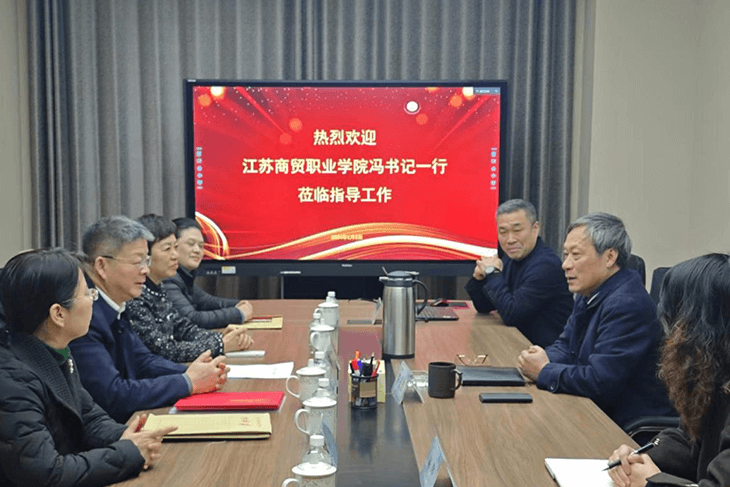 2024年1月8日下午,江蘇商貿(mào)職業(yè)學(xué)院黨委書記馮志明先生一行四人專程來到蘇商集團本部指導(dǎo)交流工作,集團董事長陳家俊先生熱情接待了馮書記一行。