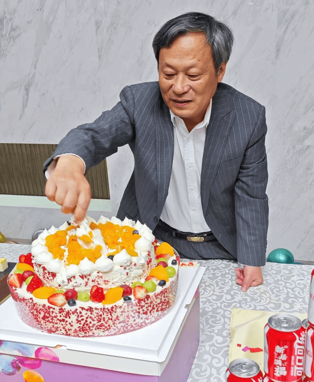 ↑集團(tuán)董事長(zhǎng)、總經(jīng)理陳家俊先生親自為慶典切蛋糕