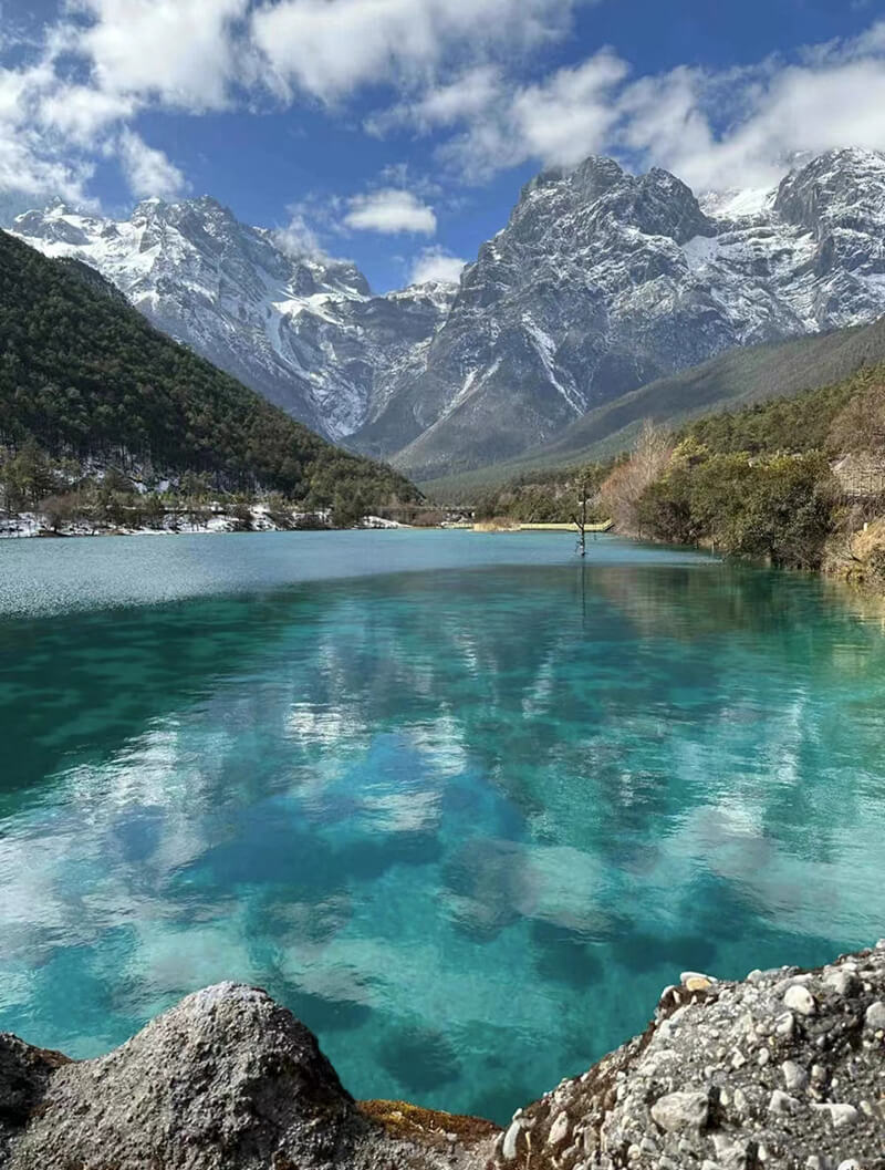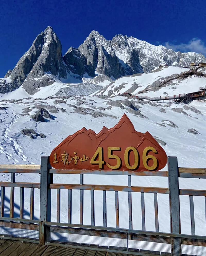 ↑玉龍雪山陽春白雪的逶迤風(fēng)光
