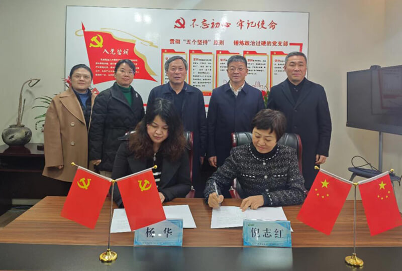 ↑商貿(mào)學(xué)院倪志紅副書記和集團(tuán)黨總支楊華書記簽署“蘇商紅盟”結(jié)對共建協(xié)議