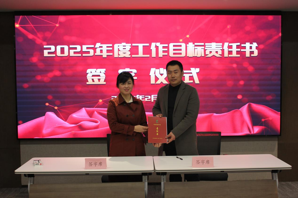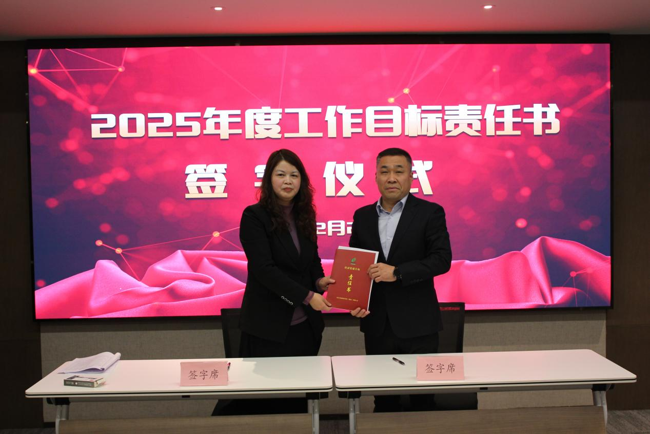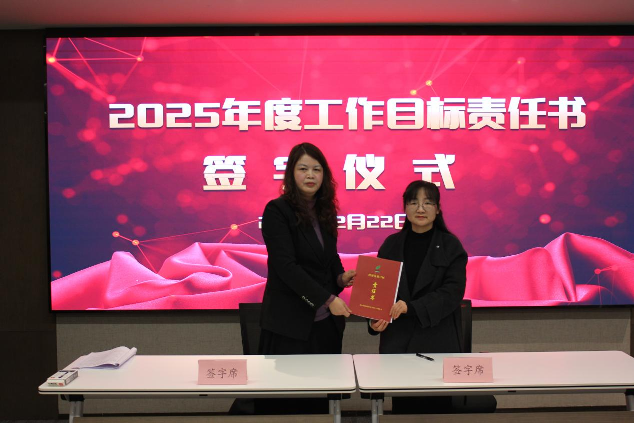 ↑副總經(jīng)理楊華女士同投資運營事業(yè)部有關責任人簽訂工作目標責任書