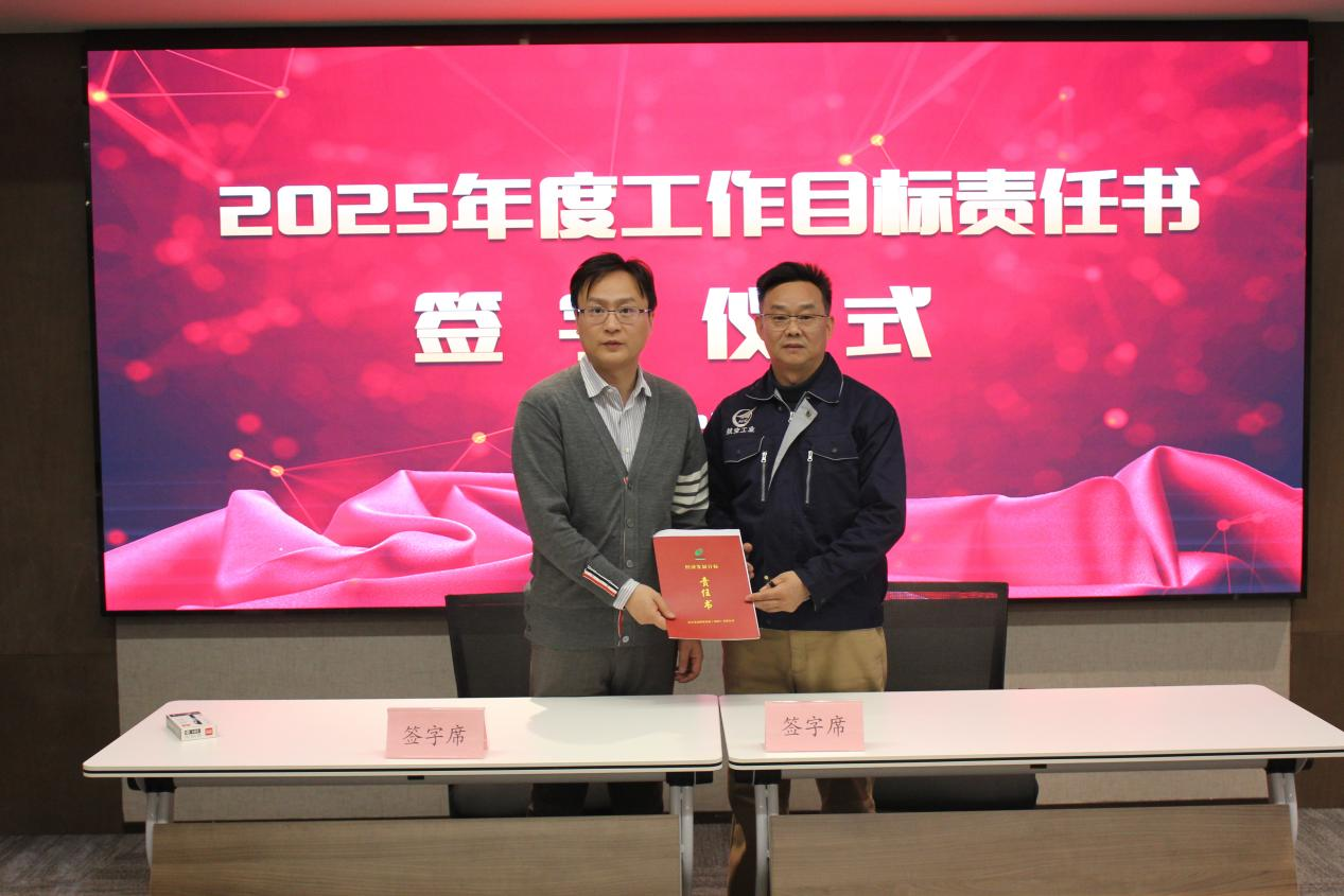 ↑副總經(jīng)理潘麗女士同裝備制造事業(yè)部和商業(yè)管理事業(yè)部有關部門負責人簽訂工作目標責任書、安全目標責任書