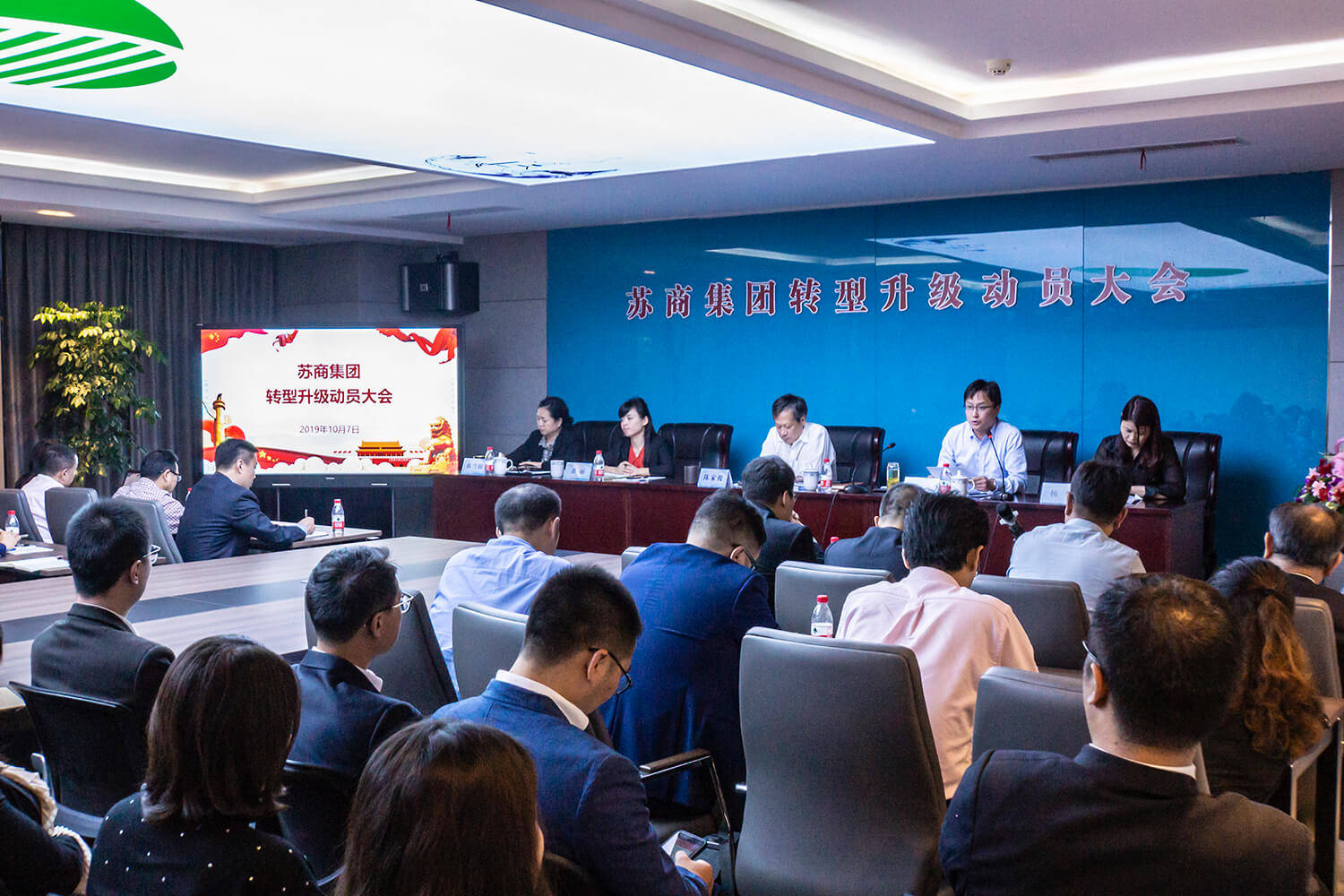 金秋送爽,丹桂飄香。2019年10月7日,蘇商集團在辦公新址華智園隆重召開轉(zhuǎn)型升級動員大會,集團領導及全體員工、河南特車、金城軌道和大匯盈商業(yè)的領導、中層以上干部及骨干員工共80余人參加了會議。