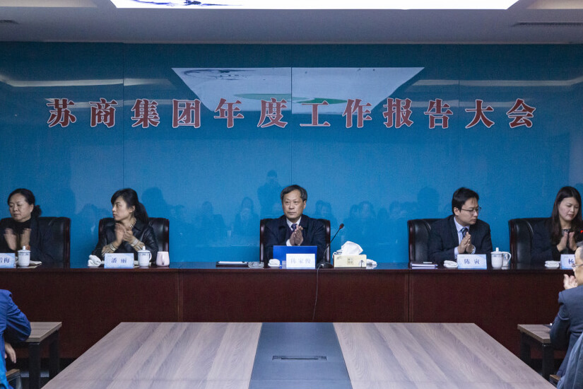 12月31日14:30,蘇商集團(tuán)2019年度工作報(bào)告大會(huì)在華智園會(huì)議中心隆重召開。集團(tuán)貿(mào)易部、大匯盈商業(yè)、河南特車和金城軌道的代表匯報(bào)了2019年工作和2020年工作計(jì)劃;蘇商集團(tuán)陳家俊董事長作2019年工作報(bào)告,對(duì)集團(tuán)2019年的工作作了總結(jié),詳細(xì)地闡述了集團(tuán)2020年三大發(fā)展戰(zhàn)略,明確了集團(tuán)2020年奮斗目標(biāo),部署了集團(tuán)2020年主要工作。