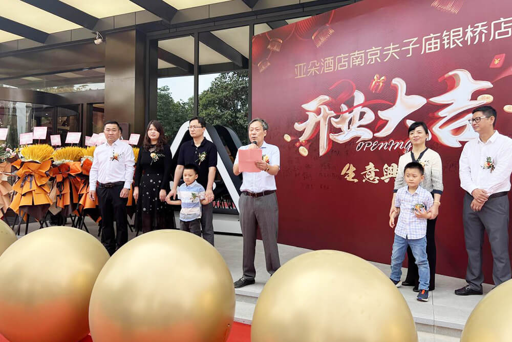“金秋時節(jié),丹桂飄香,秦淮河畔,賽虹橋旁,夫子廟銀橋亞朵酒店在銀橋市場這塊福地上開業(yè)了!”——陳董事長隆重宣布亞朵酒店盛大開業(yè)!